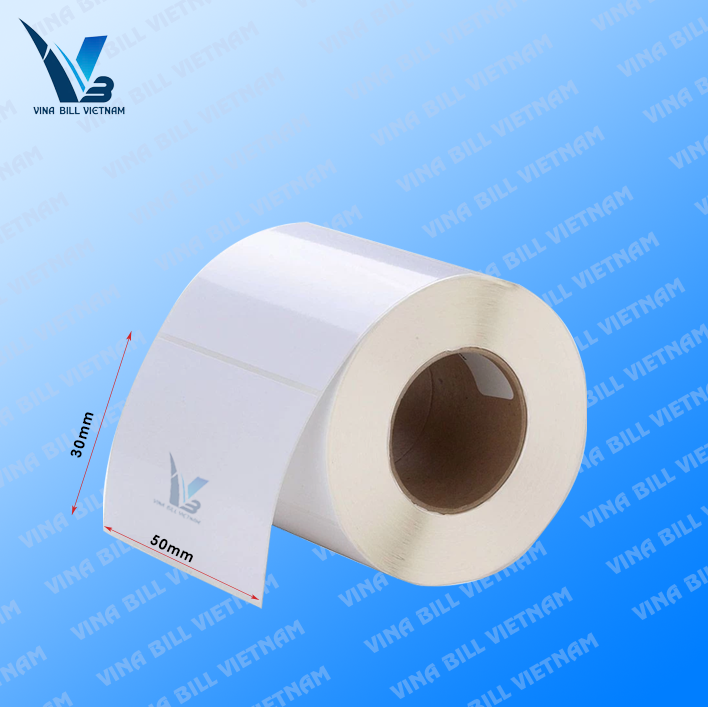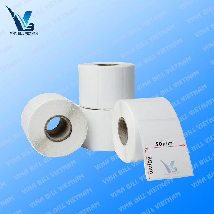 Giấy decal nhiệt 1 tem khổ 50×30 có thiết kế dạng cuộn, mỗi tem có kích thước 50mm chiều ngang và 30mm chiều cao. “1 tem” ở đây có nghĩa là mỗi hàng chỉ có một nhãn, được xếp nối tiếp nhau thành cuộn dài 30 mét. Với thông số này, một cuộn giấy thường chứa khoảng 1000 – 1500 tem (tùy theo khoảng cách giữa các tem).