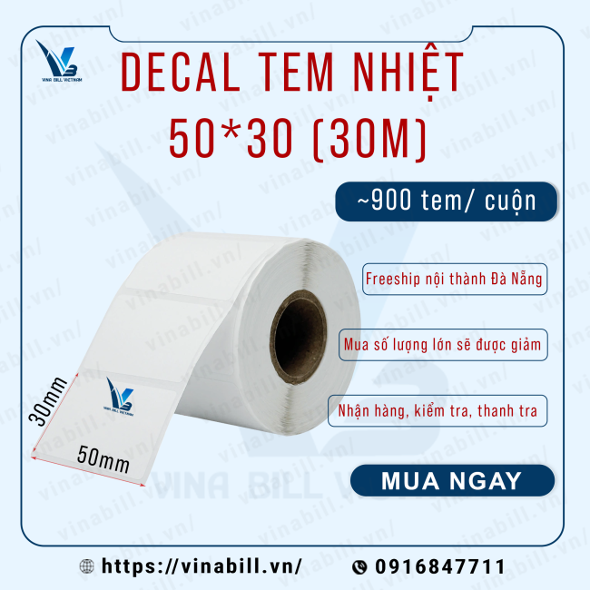 ✔️ Tem nhiệt 50×30 – Nhỏ gọn, tiện cho tem dán sản phẩm, mỹ phẩm, phụ kiện.