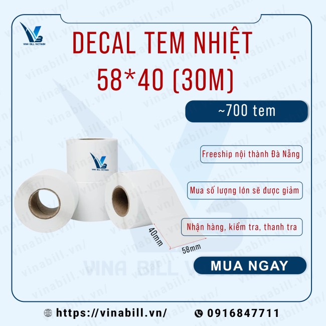 Vina Bill Việt Nam cung cấp đa dạng tem nhiệt chất lượng cao, đáp ứng mọi nhu cầu in ấn từ cửa hàng bán lẻ đến doanh nghiệp vận chuyển: