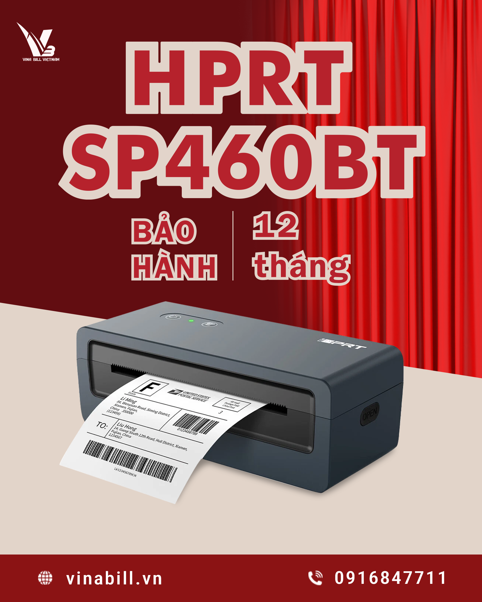 HPRT SP460BT là mẫu máy in vận đơn – tem nhãn được đánh giá cao trong phân khúc tầm trung, phù hợp cho shop online, cửa hàng thời trang, siêu thị mini và đơn vị vận chuyển.