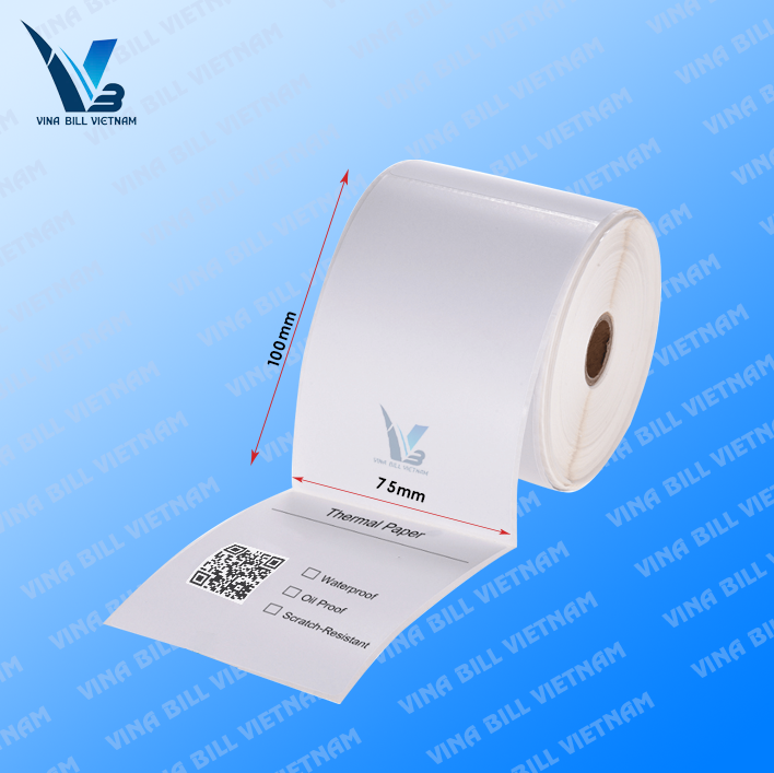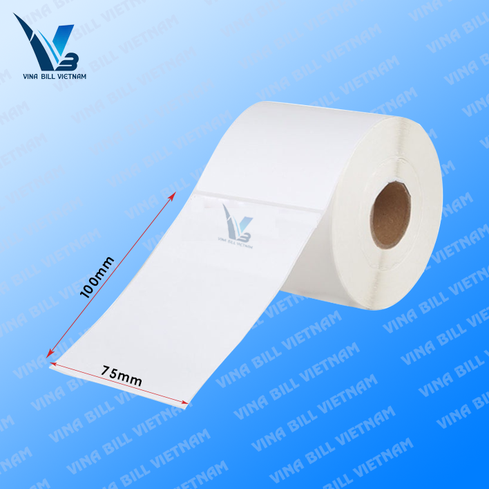 Loại giấy này có kích thước 75x100mm – nghĩa là mỗi tem nhãn có chiều rộng 75mm và chiều dài 100mm, phù hợp để in các thông tin như mã vạch, mã QR, địa chỉ giao hàng, tên sản phẩm, thông tin kiểm kê,…